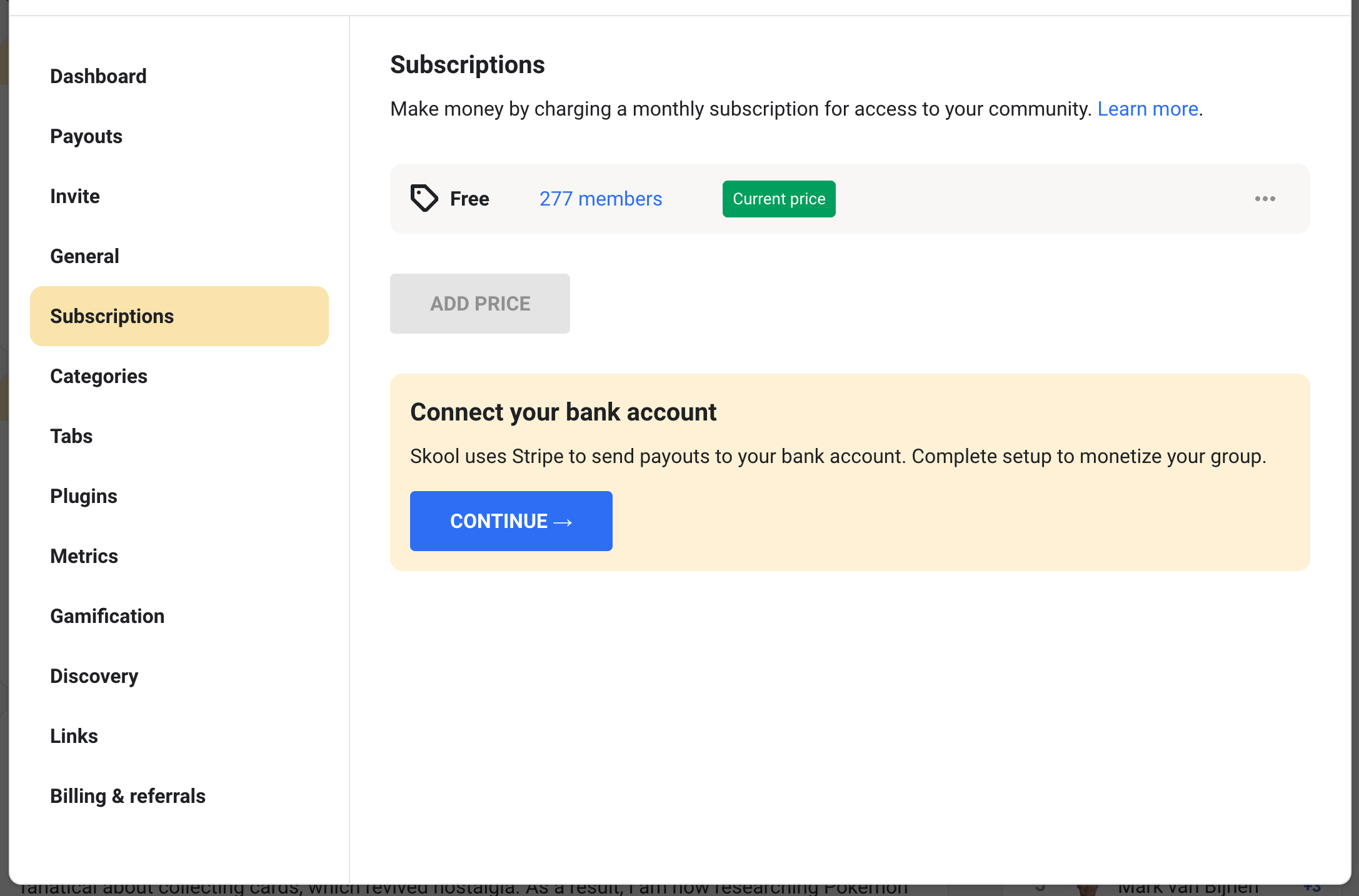 Actuellement, Skool ne prend en charge que Stripe pour les paiements en ligne. Si tu veux vendre un accès à ta communauté ou à tes formations, tu devras donc connecter un compte Stripe à ton espace Skool. Cela permet d’encaisser automatiquement les paiements, de proposer des abonnements ou des paiements uniques, et de gérer les accès sans intervention manuelle.