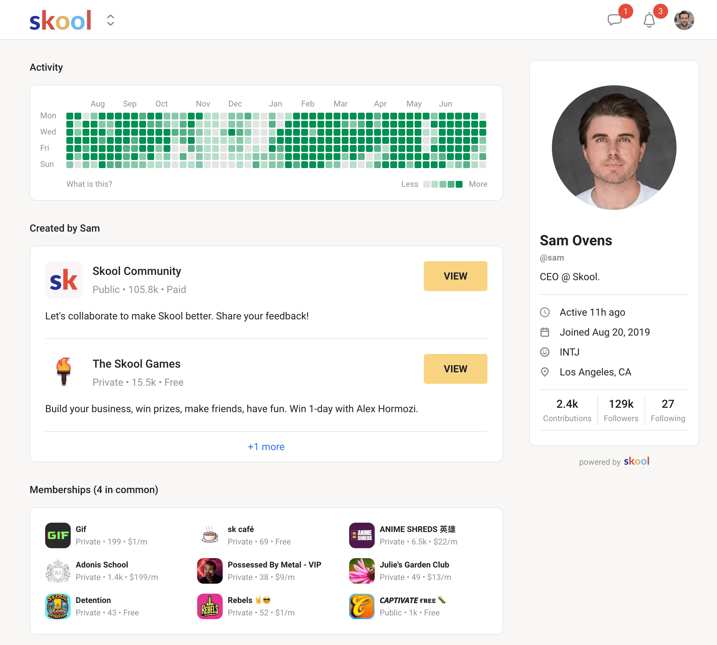 Skool a été lancé par Sam Ovens, un entrepreneur néo-zélandais bien connu dans le monde du consulting en ligne. Si tu connais Consulting.com, c’est lui. Il a créé Skool à l’origine pour héberger ses propres communautés payantes, avant d’ouvrir l’outil au public en 2020.
